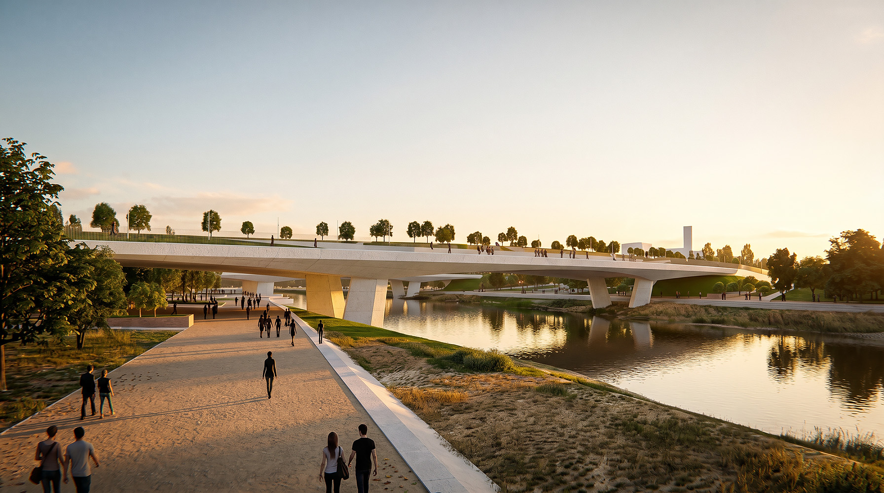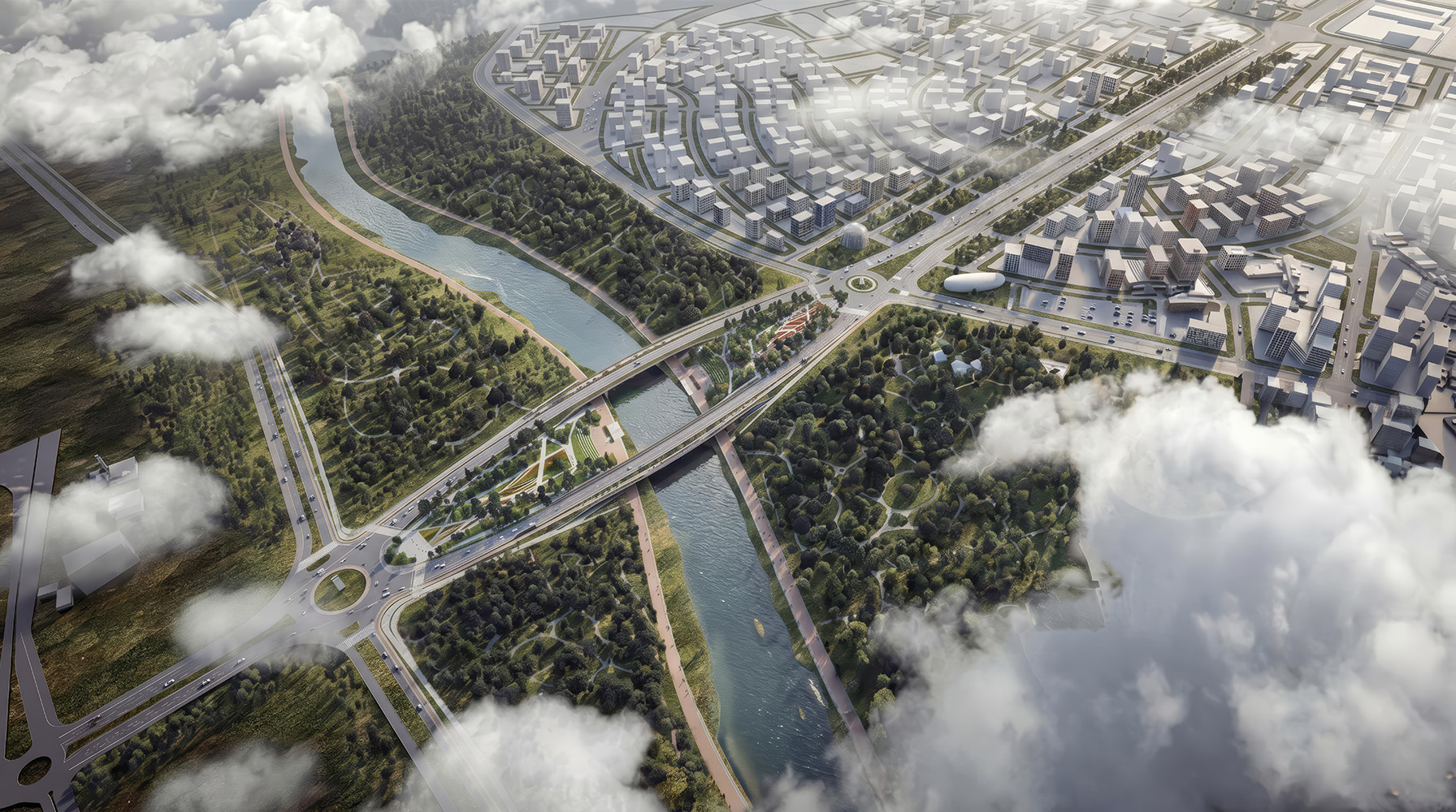 Seçilen köprü yeri, Sivas'ın ve Sivaslı'nın Kızılırmak ile buluşacağı önemli bir alanı tanımlamaktadır. Bu noktadan hareketle bu alanın salt karayolu ile değil, kentsel bir mekan olan meydan ve park ile tanımlanması projenin en belirgin tasarım kararıdır. PROJE, KÖPRÜNÜN YAKIN ÇEVRESİ VE KIZILIRMAK KIYISIYLA KURDUĞU FİZİKSEL ETKİLEŞİMLERİN KENTSEL MEKANA DÖNÜŞMESİ ÖNERİSİDİR. Projede benimsenen kararlar ile Recep Tayyip Erdoğan Bulvarı’ndan yaklaşımda beklenen kavşak, yol ve köprü algısı, kentsel bir park algısıyla yer değiştirmiştir. Kızılırmak kıyı hattı boyunca devam etmesi öngörülen rekreatif kentsel aksı ağırlık altına almayacak ve kullanım sürekliliğini kesmeyecek bir köprü, dolayısıyla '' köprü altı'' genişliği elde etmek adına, köprünün gidiş ve geliş kolları birbirinden ayrılmıştır. Ayrılan bu iki kol arasına yerleşen kıyı meydanları ve parklar nehrin iki yakasında da Sivas'ın Kızılırmak ile kesiştiği noktayı şekillendirmiştir. Genişliği 120 metreyi bulan, sınırları net tanımlanmış, tamamı ile tasarlanmış yaşam içeren yeşil mekan kurgusu, kent için odak noktası olma hedefinde ve niteliğindedir. Nehrin iki kıyısında bulunan ve kıyı kullanımını destekleyen bu kentsel alanlar birbirlerine köprü kolları üzerinden kurdukları yaya geçişi ve seyir terasları ile bağlanmaktadır. Böylece kıyı kullanıcılarının hem yaratılan meydan ve parkları hem de köprü üst kotundan Kızılırmak ve Sivas manzarasını deneyimlemesi öngörülmüştür. Köprünün her iki kolunun da dış çeperlerinde yer alan sey ir terasları doğu ve batı yönünden de kızılırmak ve sivas manzarasının izlenmesine olanak sağlamaktadır. Köprünün seyir teraslarında aldığı dışbükey form bu izleme aktivitesinin panorama algısına dönüşmesini sağlamaktadır. Araç yolları ve seyir terasları arasına yerleştirilen yeşil bantlar köprünün siluetinin bir topografya hareketine dönüşmesini sağladığı gibi aynı zamanda bu bölgelere ekilmesi öngörülmüş ses kesici çit bitkileri ile yaya ve bisiklet kullanımına ayrılmış mekanların fiziksel ve görsel açıdan birbirinden ayrılması hedeflenmiştir. Seçilen bölgede kızılırmak genişliğinin 95 metre civarında olması ve Kızılırmak su seviyesinin yaz aylarında azalıp nehir tabanının ortaya çıkması betonarme kalıp sistemlerini kolaylıkla kurabilme imkanı sağlamaktadır. Bu durum ard-gerilmeli betonarme sistem için optimum şartları sağlamaktadır. İki köprü ayağı arası mesafe 95m olarak belirlenmiş. Kızılrmak kıyısında olacağı ön görülen kıyı dolaşım aksının kesilmemesi için köprüler 45’er metre daha iki yakada da ötelenmiştir. Oturma, seyir terası kullanımı, yaya ve bisiklet dolaşımı, raylı sistem gibi farklı işlevsel kullanımlarının bir arada kullanıldığı köprü kollarında, konvansiyonel en-kesitin ters yöne çevrilerek modifiye edilmesiyle yaya ve trafik kullanımları arasında kot farkı sağlanmış ve daha ince bir kesit tipolojisi geliştirilmiştir.
